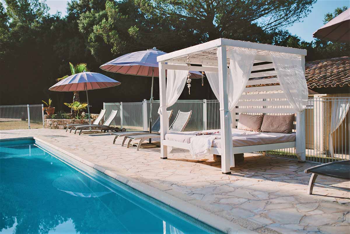 - Temps de repos et détente avec nos terrasses privatives, notre piscine, notre sauna en duo, nos hamacs et bancs ou encore notre table d’hôte.